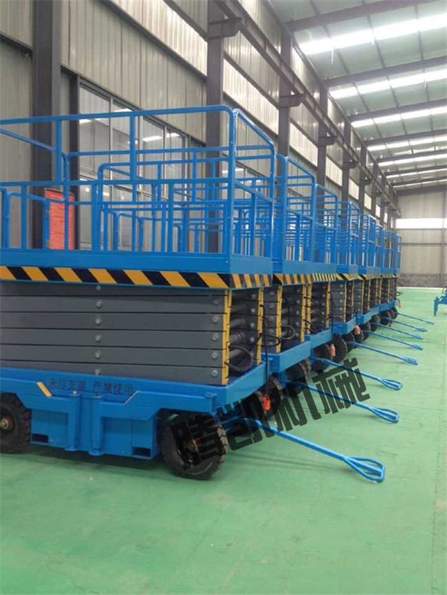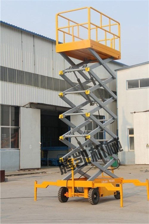 移动剪叉液压升降机是用途广泛的高空作业专用设备。它的剪叉机械结构,使升降台起升有较高的稳定性,宽大的作业平台和较高的承载能力,使高空作业范围更大、并适合多人同时作业。升降动力分为220V或380V电源,柴油机,或电瓶动力源,特殊环境也可采用防爆泵站及防爆电器。升高4—22米,载重0.3—3吨。采用意大利和国产液压泵站,台面使用防滑绝缘扣板,具有防滑,绝缘、安全,请放心使用。它使高空作业效率更高,安全更保障。
